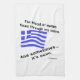 Waving Greek flag and words reading, "The blood of Hellas flows through my veins. And sometimes...its ouzo." Fun for a laugh on Oxi Day or anytime.
