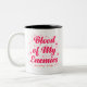 Blood of My Enemies Funny Mug is The phrase is presented in a rich, deep red color reminiscent of a victorious battlefield, creating a striking contrast against the mug's pristine white backdrop.