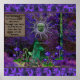 Pyramid, sun, green man set amidst a purple and shades of blue green forest with text "It's the blood of the ancients that runs through our veins and the forms pass but the circle of life remains." One of the months in the Nature Goddesses calendar.