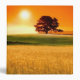 Wide angle view of a blood-red sunset over a golden wheat field. Generic background - no location