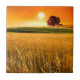 Wide angle view of a blood-red sunset over a golden wheat field. Generic background - no location