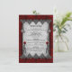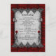 A very decorative, and very gothic wedding enclosure card indeed, 'Blood Roses and Silk Red Gothic Wedding Details' enclosure card can be easily personalzied with your own important information for your wedding guests. The design features a very decadent, lush gothic design with a distressed parchment-look paper over a ruched, rich, red silk background. Along the top and bottom of the parchment are gray and black gothic jewels decorating the edges, with pairs of creepy little silver skulls with red beady eyes on chains hanging off the corners. There also are red roses along the side with black lace ribbon to finish off the spooky, gothic feel of this enclosure card. The reverse of the card features the gray parchment-look again which covers the entire area, with a larger version of the blood red rose and lace in the middle. Please note, this rose image may be removed in the personalize (edit) options if needed, for instance if you need to add more details on the back of the card.