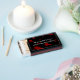 Custom printed horror theme Halloween matchboxes with blood spatter pattern on a black background. You can change the wording to any creepy quote you want on your Halloween Party Match Favors.