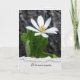 close up of white bloodroot spring wildflower in woodland with torn edge border for sympathy