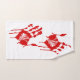 Hand towel with two bloody hand prints.