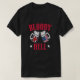 My 11 yo wore adult XL (5’7” 165#). The 8yo is small framed. She wore adult small and tied it in the back. Grandma wore adult large with long sleeve shirt underneath. Tall girl adult medium. Dark haired male adult large. Good quality dark Heather gray, Gildan brand shirt. -it was next up from basic choice and cost about $20 per shirt. Not too thick or thin. Washed and dried well, no major shrinkage. Not see-through. Can wear a bra under it fine. Screen print is just as shown and well done, front and back.