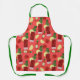 Great color and even though I ordered the kid size, it covers well enough to use during the holidays. I am not a big woman and prefer a shorter apron. I stand 5"6" and the length of the garment goes to mid-thigh. The tie straps fit well at my waist and even though there is no neck strap adjustment, the opening is plenty big enough. I am happy with the size and fit. I am sharing my apron with my 10 year old grandson, too! The color is vibrant and looks good, as shown on the website. The stitching looks strong and reinforced. Photographed is front side and back side of the apron, reinforced straps and coloring. My phone camera may not be the best at showing the details.