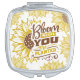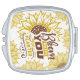 Compact mirror with Sunflowers and "Bloom where you are planted" text in yellow and brown.