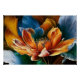A vibrant flower unfolds in a spectacle of colors, where fiery orange and golden petals dance against cool shades of blue. The artwork radiates energy, delicacy, and renewal, as if nature reveals its poetry in every detail.