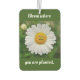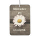Cute photo of a smiling daisy is featured on one side and a daisy growing between wood planks is featured on the other side of this auto air freshener. Both sides read, "Bloom where you are planted"! Use this sweet air freshener yourself or give as a gift, in "new car" scent.