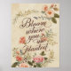 Elegant vintage poster with the quote ‘Bloom where you are planted’ in flowing script, beige watercolor background, feminine florals.