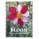 A personal sized, spiral bound notebook that features the photo image of an unusually colored Dahlia flower with red and white, variegated petals along with an inspiring and motivational quote that reads, "Bloom where you're planted." A stunning, floral design! Use as a journal or to keep important notes.
