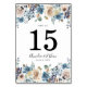 Stylish floral table number cards featuring elegant white, beige & blue watercolor flowers complimented by lush green leaves at the top and bottom framing your table number, names, and wedding date on both sides. The floral table number cards were designed to coordinate with our Blooming Beauty wedding collection. Add each table number card to your cart individually.