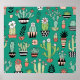 Blooming Cactuses Green Background Vintage Poster