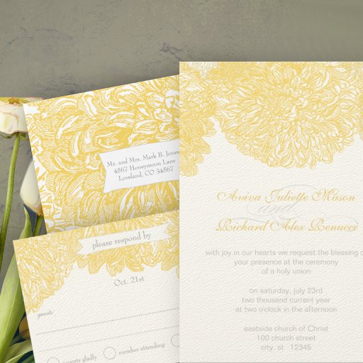Blooming Dahlia Yellow Iris Wedding Invitation