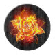 Blooming rose from fire and flame on black background.