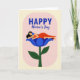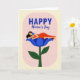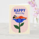 Designed with a serene, celebratory scene, this illustration centers on a graceful woman reclining on an oversized blue flower, her relaxed pose and tender smile hinting at affectionate warmth ❤️. Her dark hair flows softly as she wears a rich red outfit that stands out against deep indigo petals, and she gently holds a smaller blue bloom as if saving it for someone special. The artwork sits inside a rounded pink rectangle, which rests on a calm cream background that keeps the focus on the figures and shapes. A sturdy dark green stem and leaves rise from below, grounding the giant blossom like a steady support in a close relationship. Across the top, an uppercase message is placed in royal blue lettering, spaced clearly above the illustration. The overall look stays flat and simple, with strong blues, reds, and greens balanced by the softer pink and cream tones 🌼. The large flower’s petals radiate outward in layered indigo and blue shapes beneath her reclining figure.