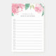 Chic personalized note pad features a top border of watercolor peony flowers in vibrant pink with lush green leaves. Personalize with two lines of custom text in modern lettering; shown with "things to do" and your name. 11 lines with checkboxes help you keep track of all your important tasks!