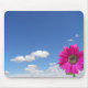 Pink Gerbera daisy against a summer sky.