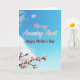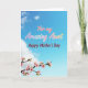 This card shows a wide, clear blue sky with soft white clouds drifting across, setting a calm, open scene that feels like a gentle day shared with someone you care about ❤️. Centered near the top, the words “For my” appear in flowing red lettering, leading the eye into the main message. Just below, “Amazing Aunt” is written larger in a smooth blend of pink, purple, orange, and warm golden tones, like a warm embrace captured in color. Beneath that, “Happy Mother’s Day” sits in a deep plum shade, anchoring the message and giving it a steady, affectionate finish. In the lower left corner, a dark branch reaches inward, as if offering the greeting like a small gift. The branch is dotted with light pink blossoms, each one showing soft petals and a brighter fuchsia center, adding a springtime tenderness 🌼. The contrast between the dark branch and the airy sky makes the blossoms stand out clearly against the pale clouds. The blossoms cluster along the branch with a few petals angled outward toward the open blue space.