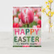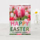 This design shows a tall, garden-style scene centered on a large blossom with white petals brushed and streaked with rich pink, standing out against a softly blurred green background. The light looks diffused and gentle, giving the flower a tender glow and soft shadows that feel calm and inviting 🌷. Around the main bloom, the background suggests more leaves and distant blooms, kept out of focus so the center flower feels like the one you’d pause to admire together. Near the lower portion, a semi-transparent band holds a short Easter greeting, set in thick, rounded uppercase letters that read clearly over the photo 🐰. The lettering alternates bright pink and deep green, with one small accent word in orange that adds a cheerful spark. The mix of soft petals and upbeat type creates the look of a shared spring moment, like two friends leaning in to point out the prettiest flower in the garden. The central bloom shows lightly ruffled edges and fine white striping through the pink, with muted greenery fading behind it.