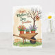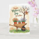 This card shows a cozy garden scene where a wooden wheelbarrow sits front and center, piled high with potted flowers that feel like a thoughtful gesture shared between close loved ones ❤️. In the foreground, terracotta pots spill over with orange blooms, soft pink clusters, and a few tall purple spikes, all arranged so the colors seem to lean toward each other like friendly conversation. The wheelbarrow rests on a bright green lawn dotted with tiny white and pink flowers, with a simple picket fence running along the back to frame the setting. On the right, a slender tree with bare branches stretches upward, adding contrast against the softer garden shapes below. A small birdhouse hangs from one branch, topped with a red roof, and a little bird perches nearby as if watching over the scene 🌼. In the upper left, the main message is placed in flowing lettering, with words alternating between earthy red and deep forest green. A gentle, sunlit wash softens the background so the garden details stand out without feeling harsh. The birdhouse’s roof is a bright red triangle against the pale sky, with the bird sitting just beside it on the branch.
