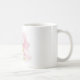 The cup features a delicate white ceramic design adorned with a floral illustration. The illustration consists of two blossoms on a single stem, set against a soft pink background. The word “Flower” is written above the illustration in a cursive, stylish font, adding to the cup’s simple and elegant aesthetic.