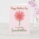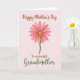 Designed with a soft blush-pink background, this Mother’s Day card centers on a large daisy-like flower that feels like a gentle hug ❤️. The petals fan outward in coral and rosy tones, and their layered shading gives the bloom a tender, affectionate look. In the middle, a bright yellow-green center is ringed by a fine fuchsia lace-like pattern that adds a romantic touch without crowding the design. A slim green stem drops straight down from the flower, bringing a calm balance to the warm colors. Near the top, the text “Happy Mother’s Day” sits above the bloom in a sepia-brown, flowing handwritten style. Beneath the flower, “To my beautiful,” appears in the same sepia-brown style, followed by “Grandmother” in larger emerald-green lettering that matches the stem 🌼. The fuchsia ring around the center appears as tiny repeating loops and scallops, like delicate lace encircling the chartreuse core.