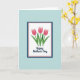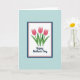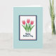 This card features a white rectangular panel centered on a pale blue background, framed by a deep navy outer border and a soft pastel pink inner border. In the middle of the panel, three stylized blossoms in coral pink stand upright, their overlapping petals suggesting a gentle closeness, like friends leaning in for a shared moment ❤️. The stems and broad leaves are a rich green, giving the flowers a fresh, just-picked look. Beneath the flowers, a short Mother’s Day message sits centered in a flowing handwritten look, colored dark blue to match the outer frame. The lettering is placed with generous spacing, leaving plenty of white space around it so the message feels calm and easy to read. Subtle texture along the borders and the text edges adds a cozy, slightly tactile feel, like a note meant to be kept 🌼. The outer border is navy with a lightly textured edge, while the inner border is pastel pink and evenly inset around the white panel.