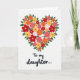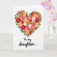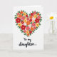 This design shows a large heart shape made from a dense cluster of flowers and leafy greenery on a white background, creating a romantic, garden-fresh centerpiece ❤️. Warm reds, oranges, yellows, and soft pinks mingle together like a bouquet arranged for someone you adore, with the blossoms leaning into each other in a cozy, affectionate way. Small white flowers and deep green leaves are tucked between the brighter petals, adding contrast and a natural, springtime fullness 🌼. The illustration has a cut-paper look, with layered edges that make the heart feel textured and gently dimensional. Centered below the floral heart, the words “To my daughter...” appear as a flowing line of text, placed with generous spacing so it feels intimate and direct. The lettering is in a darker tone that stands out clearly against the white space, and the ellipsis adds a quiet pause, like a tender moment held between loved ones. The heart’s outline is irregular and organic, with tiny petals and leaf tips extending slightly beyond the main shape.