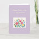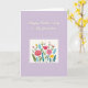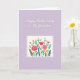 This card features a soft lavender background with a gentle off-white line of text near the top, arranged in flowing letters that look slightly raised. Below it, a bright garden illustration sits inside a crisp white rectangular frame, like a little window into spring. The flowers mix rich pinks and rosy tones with small sunny yellow blooms, and the leaves shift between deep green and cool teal, creating a cozy, close-knit feel ❤️. Some blossoms are round with tiny centers, while others are slim buds, leaning toward each other as if sharing a quiet moment. The top text stays clear and light against the lavender, while the framed artwork takes up the center space and draws the eye downward. Soft, even lighting keeps the colors gentle without sharp shadows, and the overall layout feels calm and affectionate 🌼. In the framed scene, teal rounded leaves sit beside slender green fronds, with pink petals and yellow dots scattered across the stems.