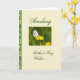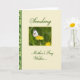 This greeting card features a pale cream background that feels calm and airy, framing a nature scene with gentle affection ❤️. In the center, a rectangular photo-style frame shows a small white-winged insect with ochre and dark markings resting on a sunlit yellow flower, as if pausing for a quiet moment together. Behind the blossom, the field fades into a soft blur of deep greens, like a peaceful garden where closeness is shown in stillness rather than words. Near the top, the word “Sending” appears in flowing lettering in a rich forest green, placed above the framed image. Below the frame, matching green text reads “Mother’s Day Wishes…” with the dots trailing lightly, like a lingering thought 🌼. Along the left edge, a vertical border repeats a simple leaf motif in lighter green, adding a gentle rhythm to the layout. The framed photo sits centered on the page with the yellow flower glowing against the darker green background.