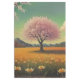 A lone cherry blossom tree stands gracefully in a golden field of wildflowers, its pink petals bursting with life against a dreamy green sky. Framed by distant mountains and soft, billowing clouds, this peaceful landscape invites the viewer into a tranquil moment of nature’s quiet splendor. Ideal for bringing warmth and serenity into any space.