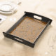 This is a well made, sturdy wooden tray with a flawless black finish and lovely map on the tray surface. It is both vintage & modern at the same time. Looks exactly like the photo; does not disappoint. So nice to find something of quality individually made and not the mass-produced 'shabby chic' merchandise seen in stores. I am so pleased to be able to give this to my college-age niece for her birthday. This can be used as a tray to hold jewelry or toiletries, or hung on the wall as art. The map surface is sealed (it is slightly shiny) so would be moisture resistant. It is well worth the asking price but I was able to apply a sale code as well. Very happy with my purchase. Map is crisp & clear and sealed with a water-resitant finish.