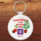 Blossom Planted Here Christian Church ADD LOGO Keychain. Stylish customizable church merchandize Keychain with text that reads THANKFUL I CAN BLOSSOM HERE plus CUSTOMIZABLE LOGO and optional Scripture verse. The design shows pot plants and bold red typography, and is inspired by the inspirational quote, Blossom (or Bloom) Where You're Planted. You can upload your logo (set to fit) and add your church name or preferred wording in place of the Bible verse. This church merchandize Keychain has your church logo incorporated into the design, and forms part of a collection of stylish church-branded accessories and party supplies for your church workers and church members. Ideal as favor giveaways at your special events and conferences.