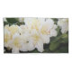 Creamy white blossom designer shams, with green and a touch of pink. Pillow cases for home or cottage. Also see matching duvet.