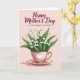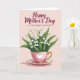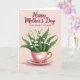This card features a soft pink background with a delicate teacup and saucer centered like a small keepsake, holding a bouquet of tiny white bell-shaped flowers and lush green leaves that lean together as if in a gentle embrace ❤️. The cup is blush-toned with thin gold edging on the rim, handle, and base, and a lace-like white pattern wraps around it for a cozy, affectionate feel. A heart emblem sits on the front of the cup, echoing the caring bond suggested by the carefully arranged blooms. Near the top, the words “Happy Mother’s Day” appear in deep red, flowing lettering, arched slightly above the flowers. Just below that, “— TO MY DEAREST STEP MOM —” is set in a simple, all-caps style in the same deep red, centered and spaced evenly for a neat, heartfelt dedication 👩. Soft lighting creates gentle shadows under the saucer and along the cup’s curves, giving the scene a calm, intimate warmth. The gold accents catch the light subtly, especially along the rim and handle, against the rosy pink backdrop. The saucer matches the cup with blush color, fine gold trim, and a faint shadow that grounds it on the page.