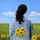 Elegant yellow sunflowers with light yellow text Denim Jacket. Text can be personalized.