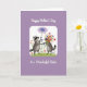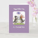 This card features a soft-edged white frame centered on a gentle lavender background, creating a calm space for a sweet scene. Inside the frame, two grey, ring-tailed woodland animals with dark eye masks stand close together on a green patch sprinkled with small wildflowers, their bodies angled as if sharing a private moment ❤️. The animal on the left tilts its head up with an eager, tender look, holding out a single blue flower on a long stem as though offering it to a dear friend. A pale thought bubble floats above that flower, adding a dreamy touch that suggests affection without needing extra words. On the right, the second animal hugs a full bouquet with red, pink, yellow, and blue blooms, leaning slightly inward like it’s ready to trade flowers or accept the gift 🌼. A celebratory message appears in white lettering, with one line placed above the framed illustration and another line below it, standing out clearly against the lavender. The flowers include rounded petals, small star-like blossoms, and a few taller stems rising above the green grass.
