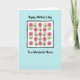 This card shows a calm pastel blue background with a centered rectangular panel outlined by a thick, slightly uneven black border. Inside the panel, a tidy grid of twenty stylized flowers creates a gentle, friendly rhythm, like a small garden arranged with care. Each blossom has five pink petals around a deeper pink center, standing on thin black stems with two green leaves that lean toward one another in a quietly affectionate way ❤️. A few leaves include small touches of yellow and light blue, adding soft variety without breaking the orderly pattern. Near the top of the panel, rounded black lettering reads “Happy Mother’s Day,” placed above the flowers so it feels like a warm greeting floating over the bouquet 🌼. Near the bottom of the panel, matching black lettering reads “To a Wonderful Niece,” centered beneath the stems to balance the design. The flowers are evenly spaced in rows and columns, with occasional yellow and light blue accents sprinkled among the green leaves.