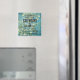 It was a bit smaller than expected, but I was too excited to check dimensions. The product itself send well printed though the grey text is a bit paint. Magnet worked perfectly on my fridge.