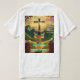 In the background, the scene transitions into a picturesque landscape, featuring rolling hills and a vibrant sunrise, signifying the dawn of a new beginning. Rays of sunlight illuminate the surroundings, infusing the design with a sense of divine presence and spiritual enlightenment.
