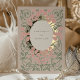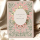 Invite your guests to witness the blossoming of your love with this Art Nouveau-inspired wedding invitation. The design blooms with a symmetrical floral pattern featuring soft pink and blush flowers intertwined with olive green vines and leaves, symbolizing the intertwining of two lives. A touch of understated elegance is achieved through the use of soft beige and muted gold tones, creating a gentle and inviting atmosphere. The circular frame at the center is a nod to unity and eternity, core themes of marriage, making this invitation not just a mere card, but a prelude to the lifelong romance about to unfold. The matte background complements the metallic sheen of the gold accents, which catch the light and promise to bring a sparkle to your guests' eyes. This invitation is perfect for couples who cherish the beauty of nature, the elegance of vintage design, and the promise of a future as enduring as the Art Nouveau movement itself.