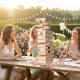 This giant tumbling tower makes a stunning keepsake activity that gets everyone laughing and mingling. Stack it high as a gorgeous photo backdrop, then let the games begin! When the party’s over, it becomes a cherished memento the bride will love displaying for years to come.