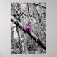 A black and white photograph with a little color