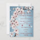This beautiful wedding invitation showcases an elegant floral design featuring a delicate branch adorned with soft pink cherry blossoms. The light blush tones of the flowers and the gracefully curved dark branches exude romance and timeless beauty, making it the perfect choice for couples looking to celebrate their love in style.