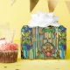 The original digital painting on this wrapping paper is sure to give a laugh to children of all ages! Against a colorful background of undulating ribbons is an irreverent Island Native sticking out his tongue and wiggling his ears as he 'blows his raspberries' while 2 friendly ball-shaped monster friends cheer him on. For birthdays, Christmas, whenever.