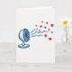 This greeting card shows a hand-drawn blue fan sitting in the lower left corner on a white background. The fan has simple grille lines inside it that hint at how it works, and it feels friendly rather than stiff. From the fan, wavy blue airflow lines drift out and lead into a trail of red hearts. The hearts vary in size and angle, and they move diagonally up toward the right side like they’re floating across the open space. There’s no printed message or wording on the front, so the artwork carries the whole Valentine’s Day feeling on its own ❤️💌. The strong red hearts against the white background make the affection feel clear and direct, with a sweet touch that fits romance or friendship 🍫.