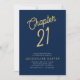 Blue 21st Birthday Gold Script 21 Birthday Invitation