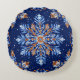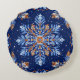 Blue 3d snowflakes round pillow